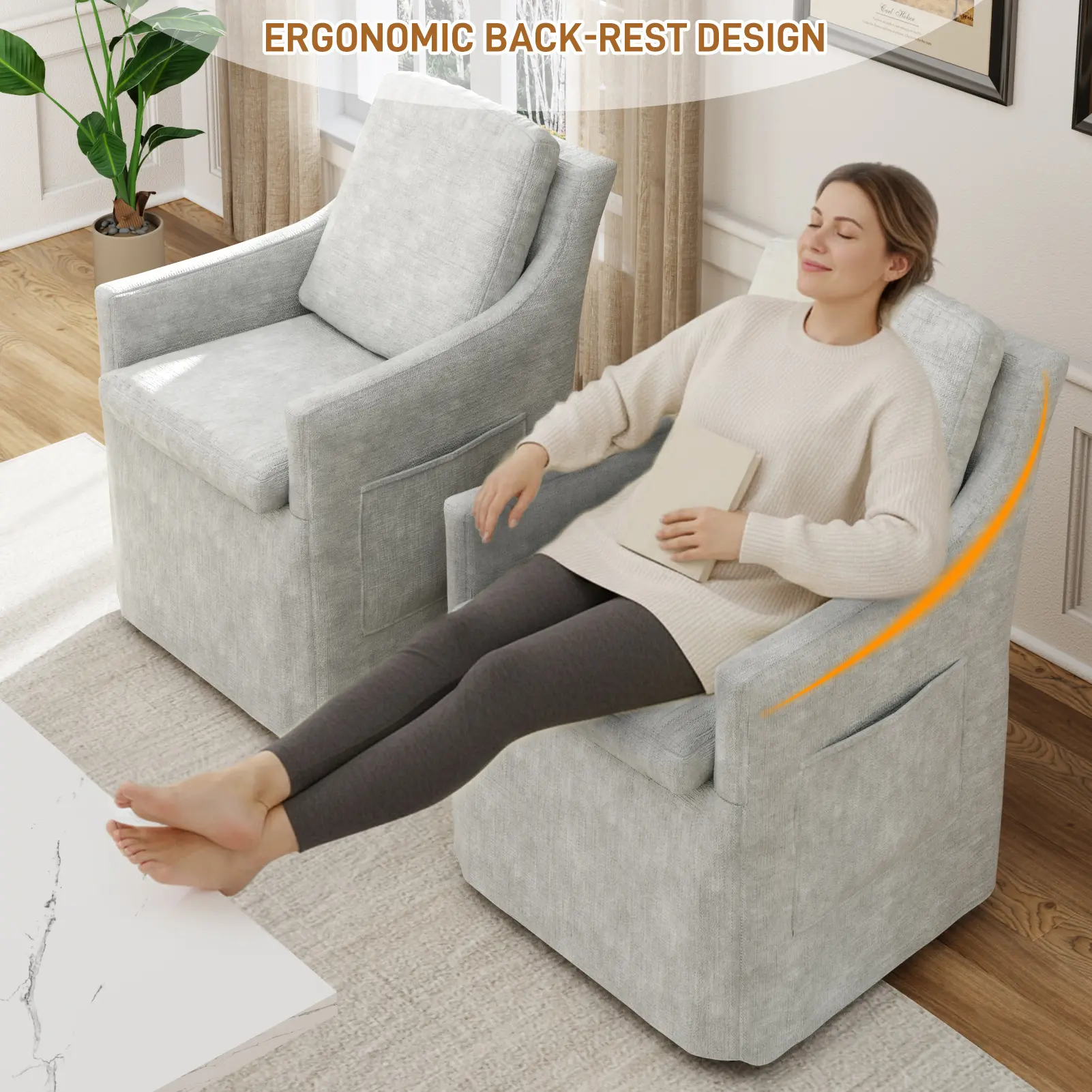 Full chenille upholstery + wide, thick seat cushion deliver cloud-like comfort for long meals or reading sessions. Ergonomic semi-wrap design supports your back and neck, promoting good posture and relieving pressure. Removable seat cushions make cleaning a breeze.