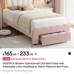 HOSTACK Modern Upholstered LED Bed Frame 【No mattress】