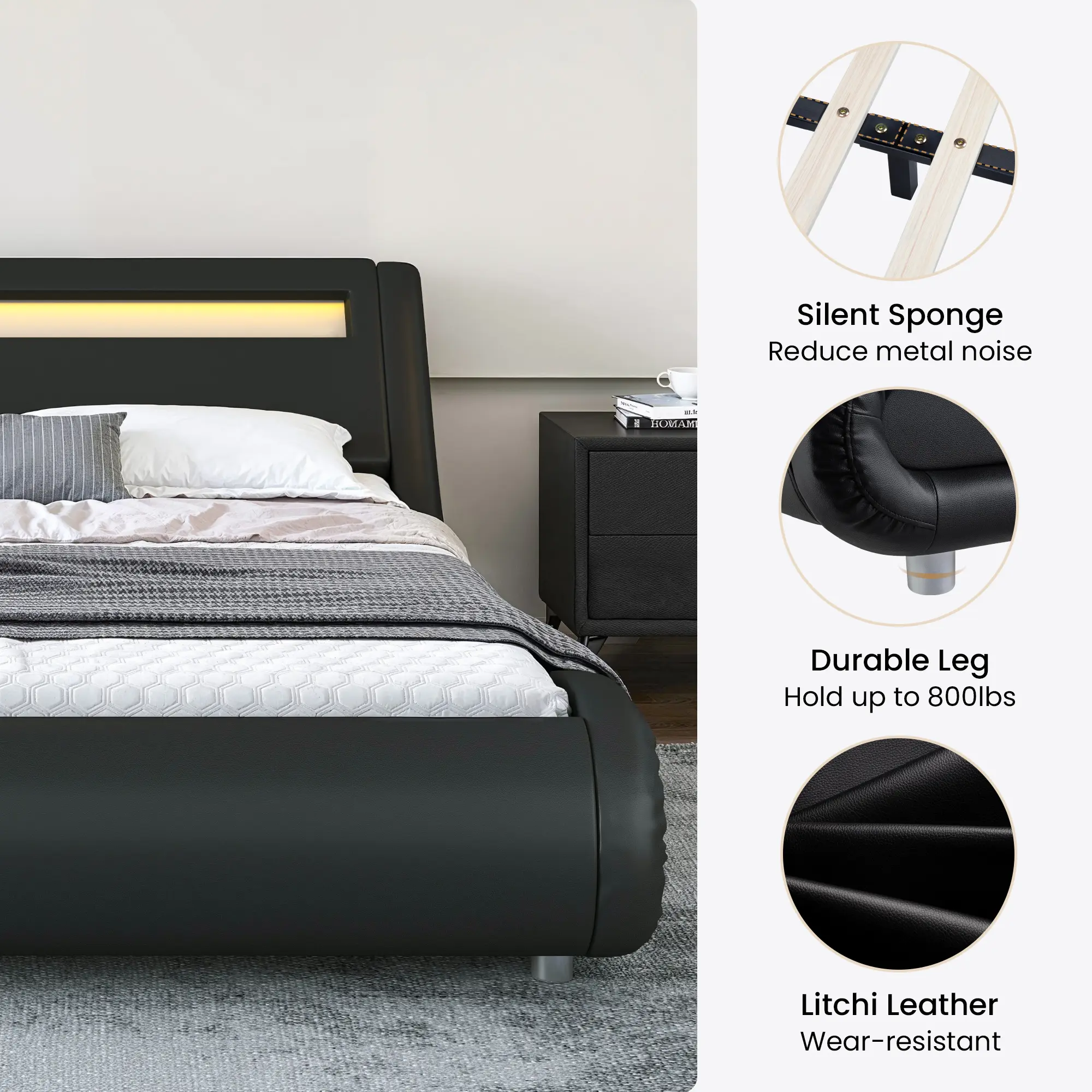 SHA CERLIN Deluxe LED Bed Frame with PU Leather Upholstered Adjustable Headboard,Modern Low Profile Sleigh Design,Heavy Duty Wood Slat Support,No Box Spring Needed,Full/Queen/King Size#ChristmasGifts#TikTokShopBlackFridaySHA CERLIN Deluxe LED Bed Frame with PU Leather Upholstered Adjustable Headboard,Modern Low Profile Sleigh Design,Heavy Duty Wood Slat Support,No Box Spring Needed,Full/Queen/King Size#ChristmasGifts#TikTokShopBlackFriday
