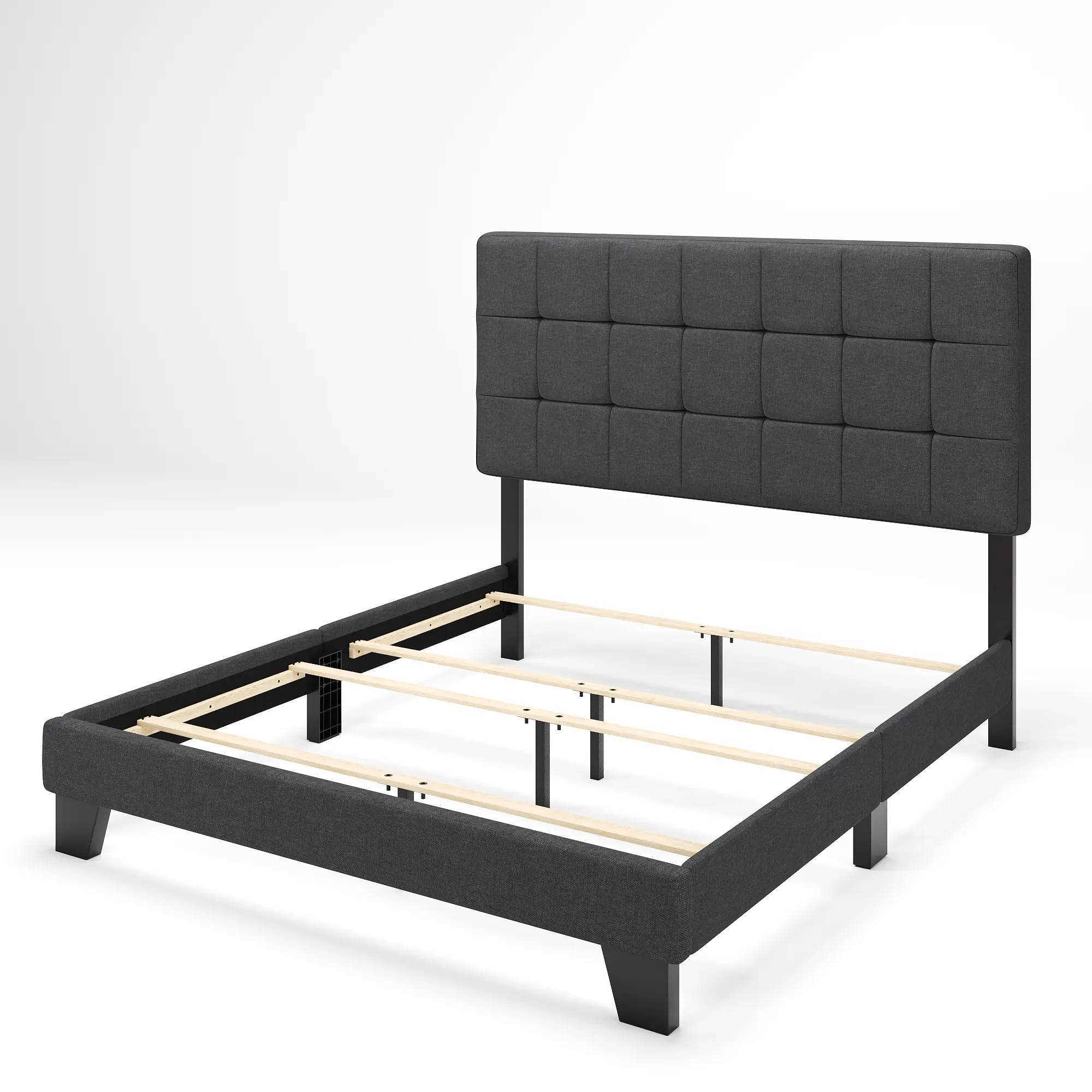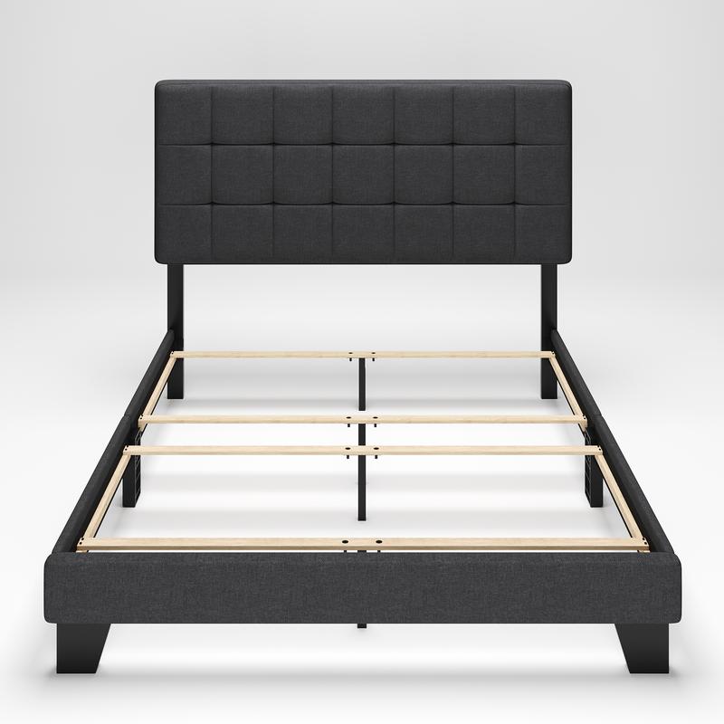 ·STYLISH DESIGN: Clean lined simplistic design of this fabric upholstered bed frame and stylish box tufted upholstered headboard, makes this simple and chic bed frame fits a variety of bedroom decors