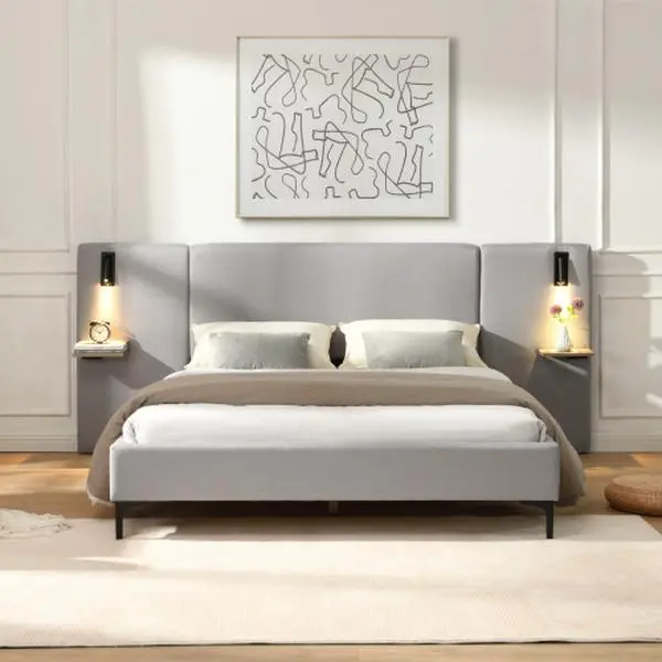 ·The soft gray linen upholstery*introduces a calming, neutral foundation to your bedroom decor, effortlessly harmonizing with bold accents, minimalist palettes, or organic-inspired interiors.