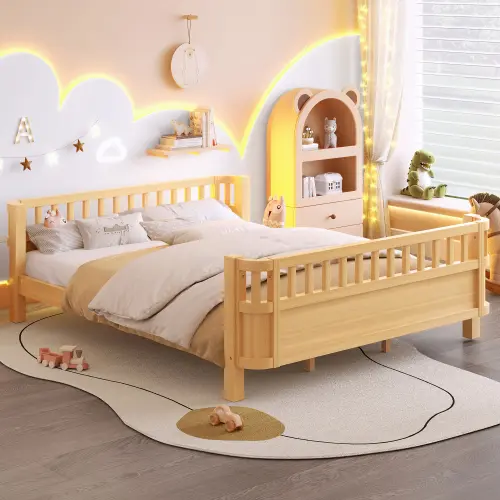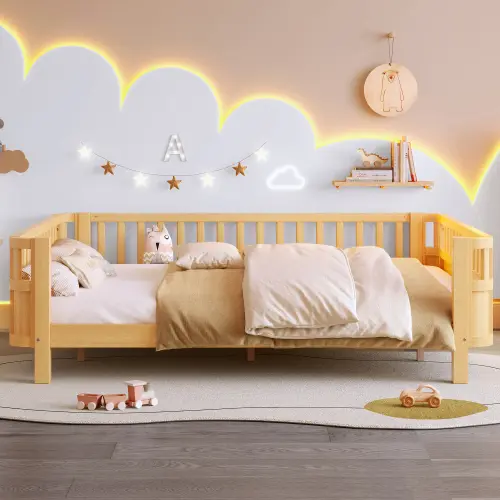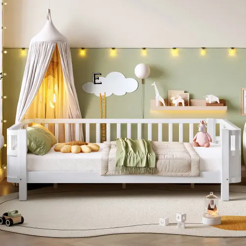 ·【Detachable Fence】The right side is a removable fence that enables flexible mode change. Changing the bed from “three sides surrounded” to “two sides open” mode, adapting to different placement needs or changes in the use of the child's growth.