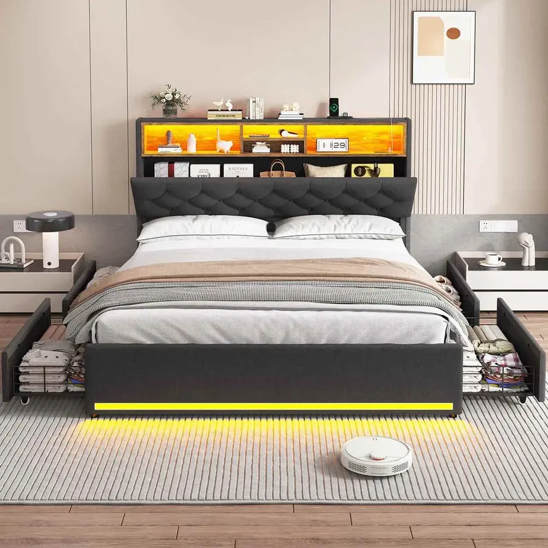 Bed Frame with USB & 4 Drawers
