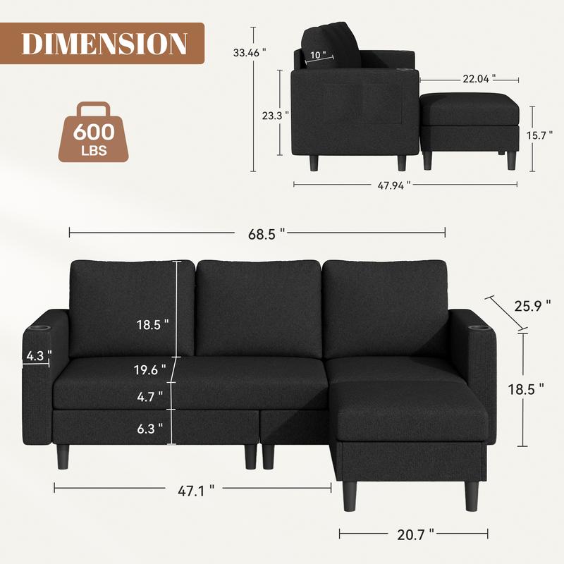 ·REVERSIBLE OTTOMAN:This modular sectional sofa comes with a reversible ottoman that can be placed on either side to create a personalized sectional couch or L-shape sofa, giving you flexibility to adjust based on your space.