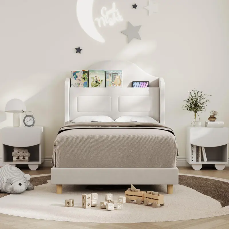 More than just a bed, it supports your child's growth and brings sweet dreams to life, fostering a happy and healthy childhood. The bed frame also features built-in storage space, keeping your child's room tidy and organized—ideal for storing toys, books, or pajamas and making bedtime routines easier for everyone. Elevate your child's sleeping experience with this delightful and practical bed frame!