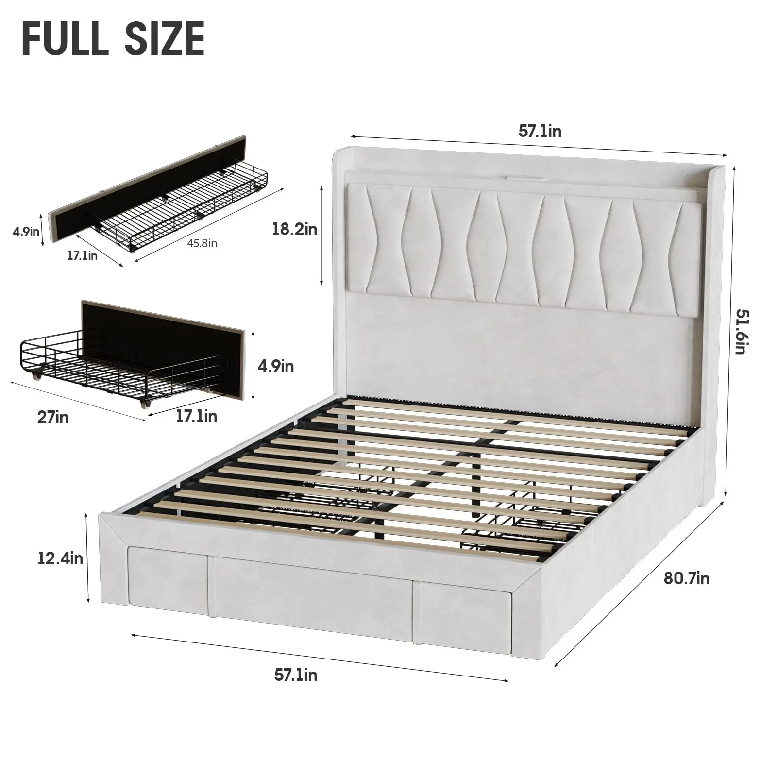 【Adequate Storage Space】: This platform Bed Frame maximizes the utilization of unused storage space. Two small drawers and one long drawer provide ample space and more diverse storage options for storing bed sheets, accessories, and off-season clothing, keeping your bedroom organized. Each drawer has smooth wheels that are easy to pull.