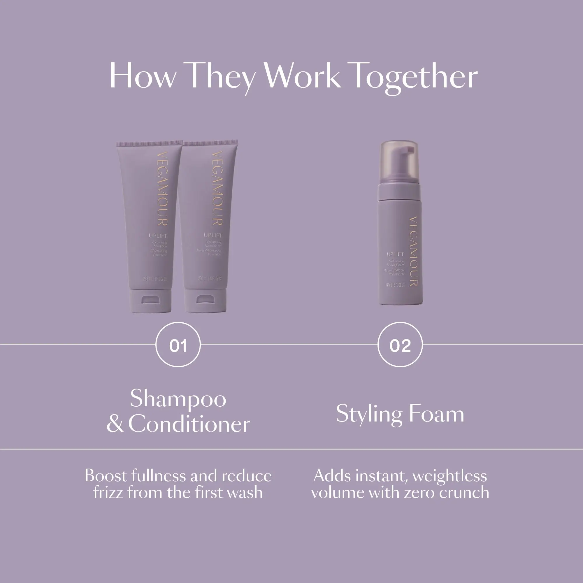 Delivers 24 hour volume and humidity resistance while protecting the hair from heat styling, this cloud-like volumizing foam formulated with clean ingredients provides touchable fullness and body, natural movement and a lived-in look and feel.