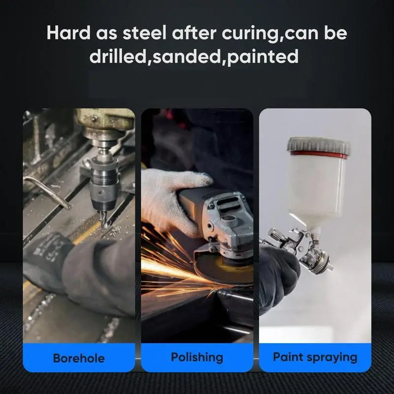 Long-lasting Bond Strength: Forming a strong and stablepermanent bond, our Metal Cast lron Magic Repair Glueensures longevity. This reliable bond can endure for yearsand allows for shaping, tapping, filing, sanding, anddrilling based on your requirements.
