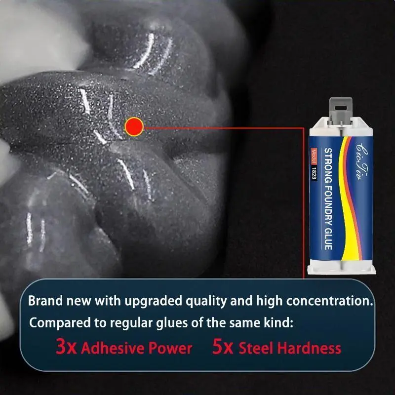 Versatile Surface Application: Our glue is specificallyformulated for iron and steel casting, effectivelyaddressing issues like sand holes and pores. Additionallyit can be used for repairing fuel tanks, plumbing systemsconcrete breaks,and more. Ensure the surface is cleanand dry before applying the glue, and your repair workwill be completed within 20 minutes after mixing.