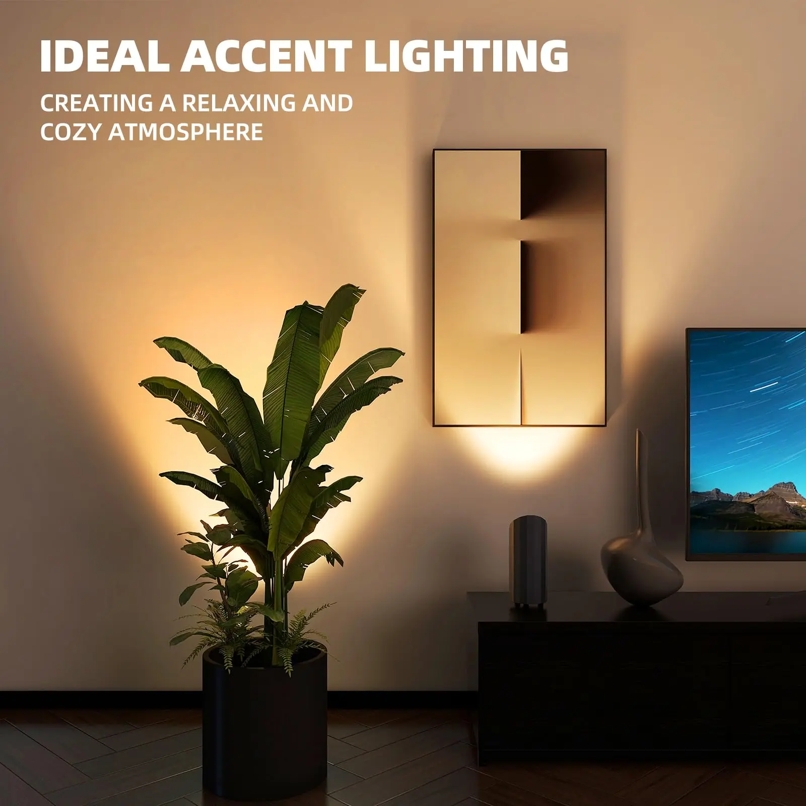 ·Ambiance Enhancing: Emitting a warm 3000K color temperature, the accent light creates a cozy ambiance, ideal for enhancing the decor of home, room, wall art, plants, or tree