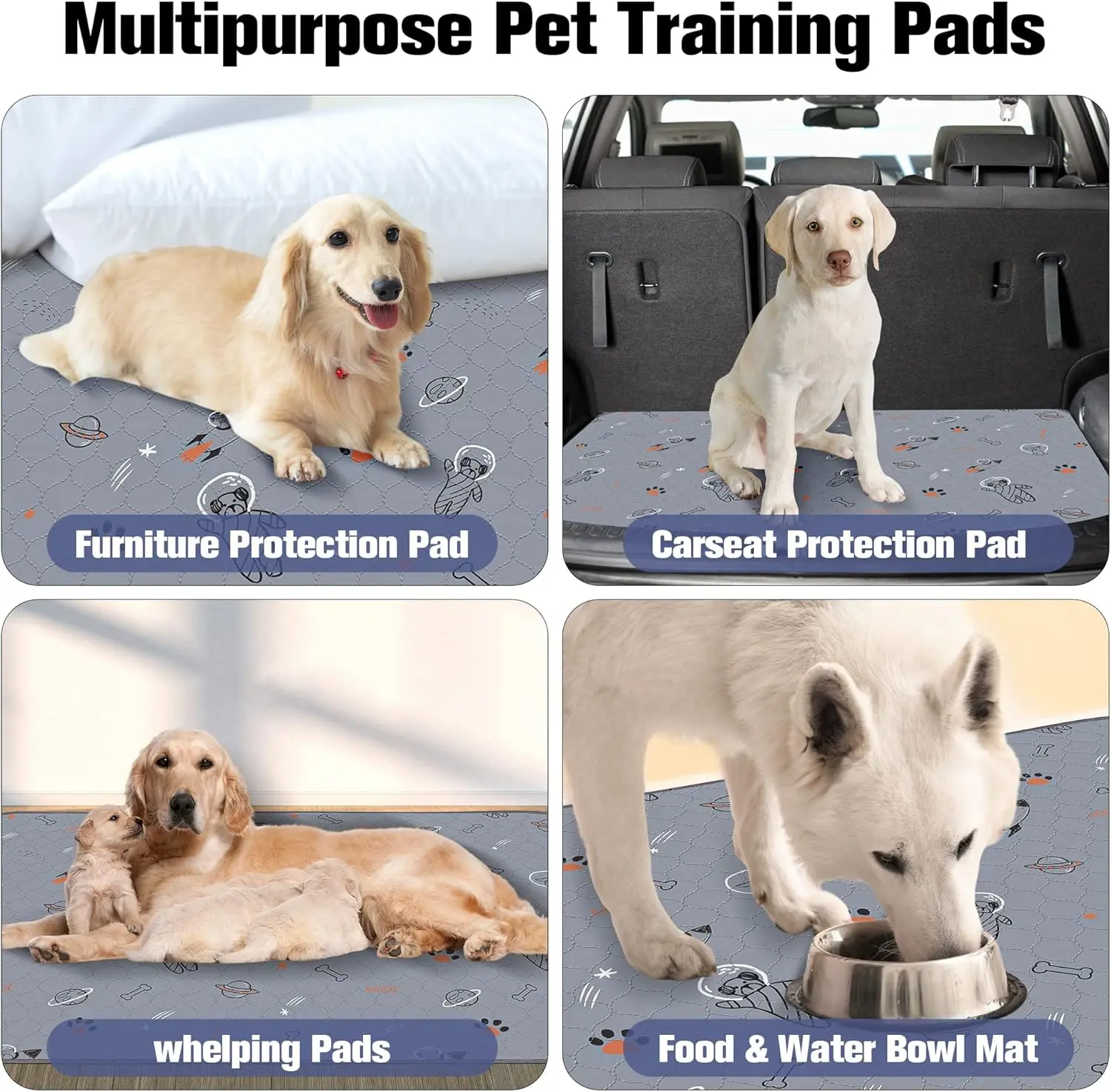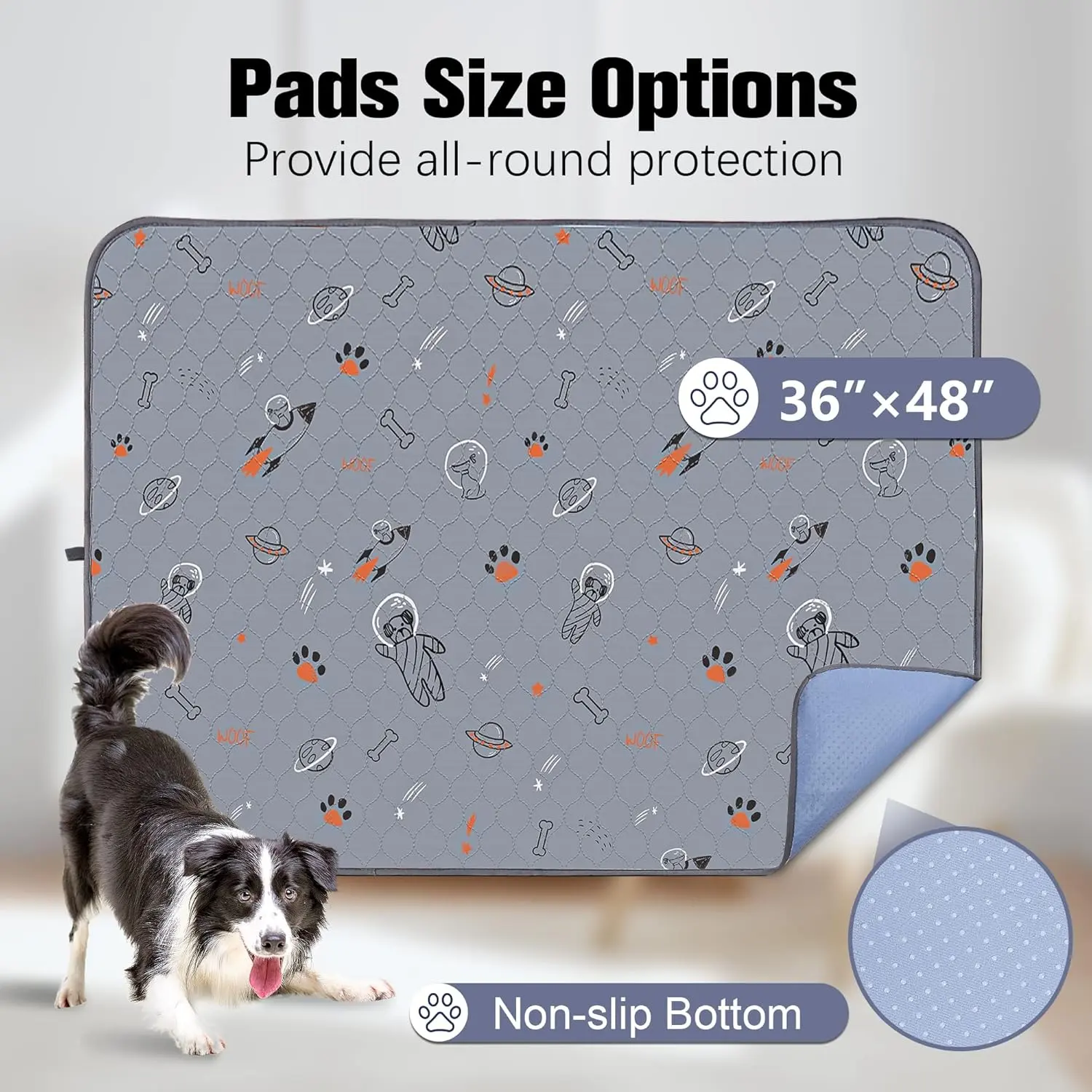·Multiple Usages: Washable dog pee pads are perfect for use in the crate, kennel, and playpen or whelping pads to help puppies. Placing under food bowls and litter boxes. Also easily fold up for mess-free travel with your puppy, and protect car seats. The unique pattern design decorating your room, multiple sizes choose.