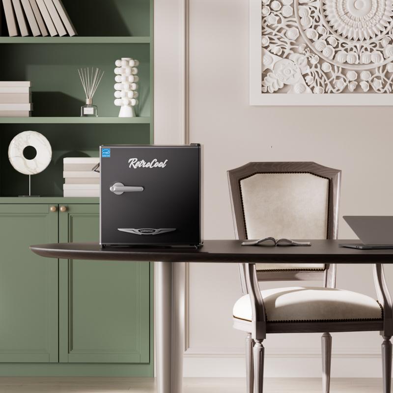 The Upstreman Retro Mini Fridge features a classic metal handle and side bottle opener. It measures 18.8"x17.7"x19.3", fitting seamlessly on counters or desks. This compact fridge enhances any setting with its high-end look. Perfect for offices, bedrooms, or dorms.