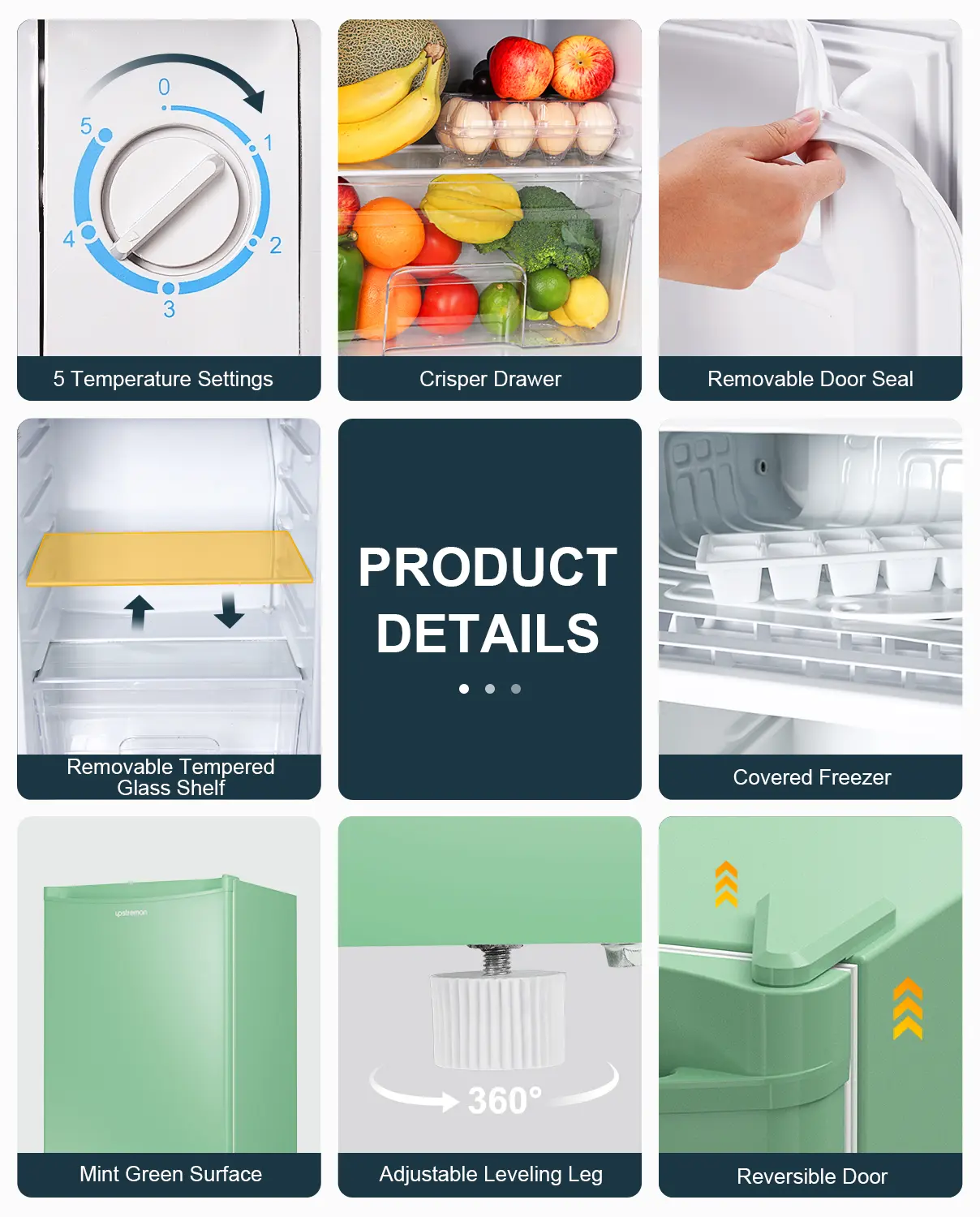 ·Includes: Mini fridge, 2 removable shelves, crisper drawer, ice tray, defrost tool, and reliable customer service. 🛒