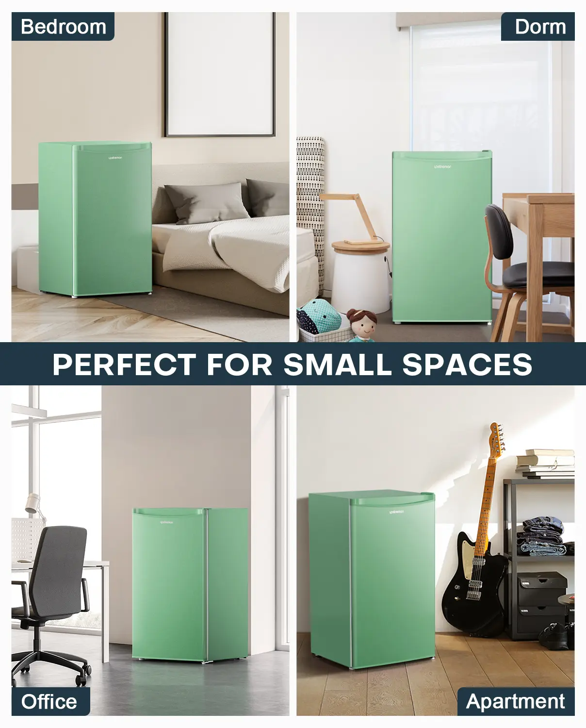 ✨ Upstreman mini fridge offers 3.2 cu.ft (90.6 L) capacity with an internal freezer. Perfect for dorms, offices, bedrooms, RVs, and garages. Its space-efficient dimensions: 18.7" W x 17.4" D x 33.1" H. Consumes about 0.5 kWh/day. 📦