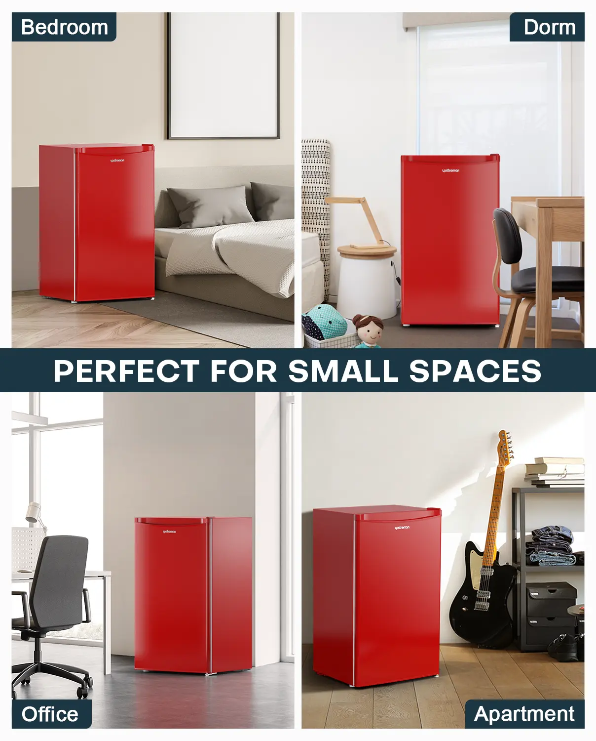 ✨ Upstreman mini fridge offers 3.2 cu.ft (90.6 L) capacity with an internal freezer. Ideal for dorms, offices, bedrooms, RVs, and garages. Its dimensions: 18.7" W x 17.4" D x 33.1" H. Consumes about 0.5 kWh/day. Perfect for space-efficient storage needs.
