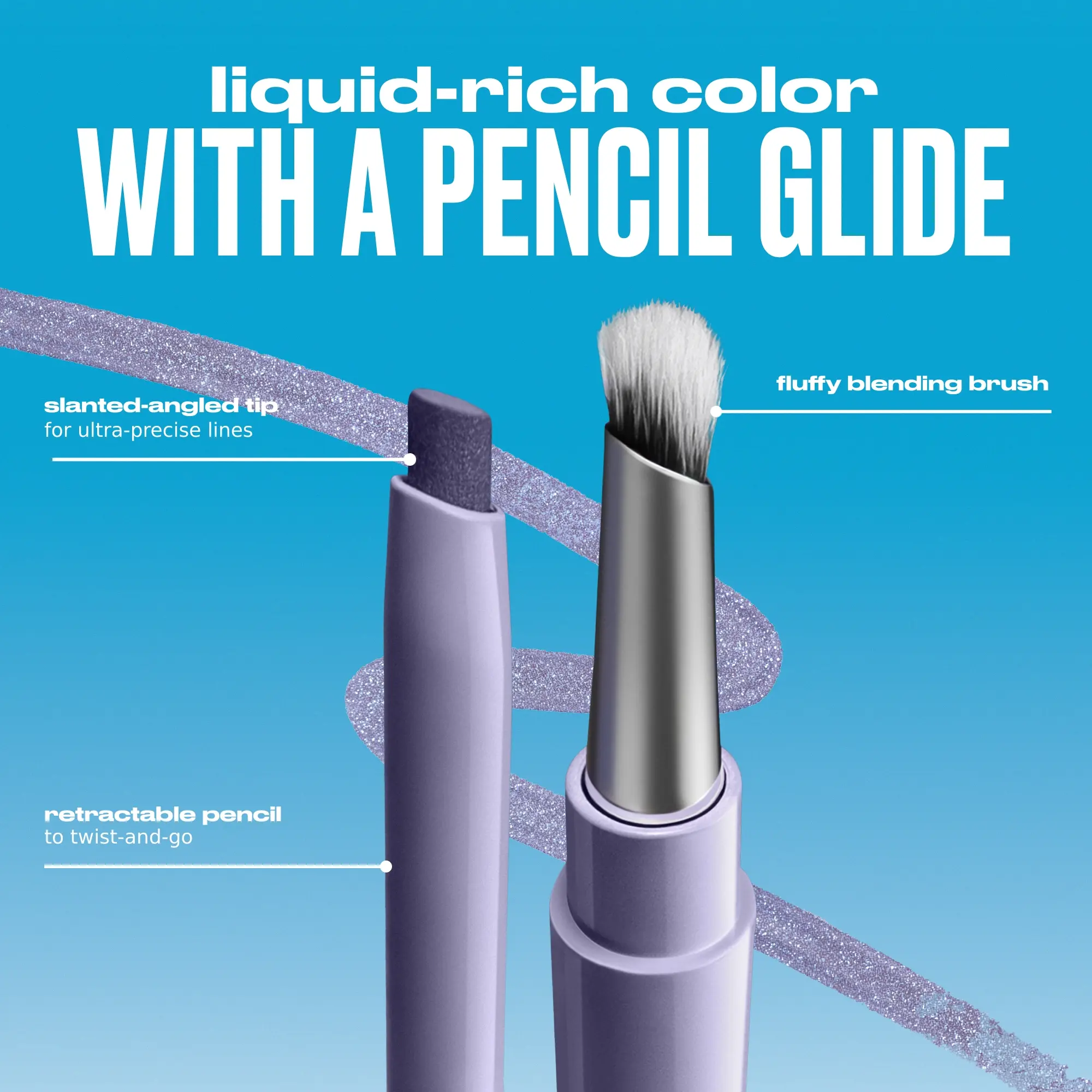 This dual-ended eyeliner features a retractable, slanted precision tip for ultra-sharp lines and graphic wings, plus a built-in fluffy blending brush to smoke out and diffuse before it sets. The high-pigment formula locks in fast, so blend quickly for your desired finish.