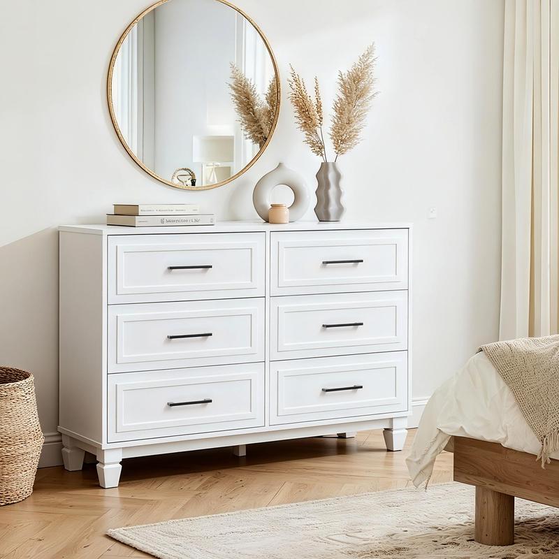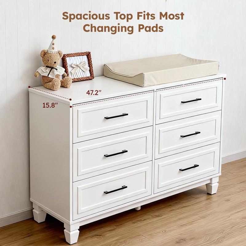 ·SPACIOUS STORAGE SPACE: The bedroom dresser measures 15.8"D x 47.2"W x 31.5"H, comes with 6 large drawers to store and sort clothes/toys/blankets and other household items. This dresser organizer also works perfectly as a TV cabinet and can hold up to a 55-inch TV.