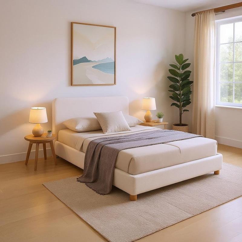 Crafted with high-end boucle fabric, this cloud bed frame offers a soft, textured finish. It adds elegance and warmth to any bedroom, blending modern style with cozy comfort. Perfect for those seeking a stylish touch without compromising on comfort.