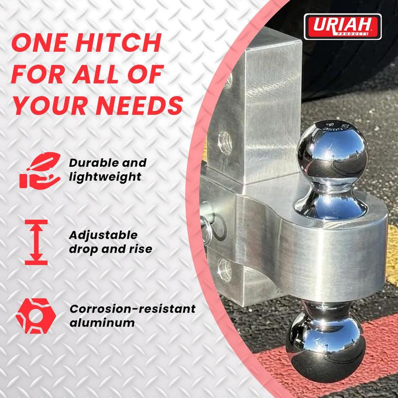 Unlock the versatility you need for all your towing adventures with the Uriah Products Aluminum Reversible Hitch Ball Mount. Crafted from durable, lightweight aluminum, this adjustable hitch ball mount offers unparalleled performance and convenience.Designed to handle loads up to 5,000 lbs with the 2-inch ball or 7,500 lbs with the 2.31-inch ball, this hitch is engineered to tackle even the most demanding towing tasks. With both towing balls included, you can seamlessly transition between different trailer sizes, ensuring a secure and stable connection every time.The adjustable drop and rise feature allows you to customize the height to perfectly match your vehicle and trailer, eliminating the need for complex modifications. Easily adjust the hitch in 1-inch increments to find the perfect fit, ensuring a level towing experience.Whether you're hauling ATVs, UTVs, trailers, or any other heavy-duty cargo, the Uriah Products Aluminum Reversible Hitch Ball Mount has you covered. Featuring a sturdy construction and SAE J684 certification, this towing essential provides the peace of mind you need when towing precious loads.Elevate your towing game with the Uriah Products Aluminum Reversible Hitch Ball Mount. Crafted with precision and designed for maximum performance, this hitch is the ultimate companion for your next adventure on the road or trail.