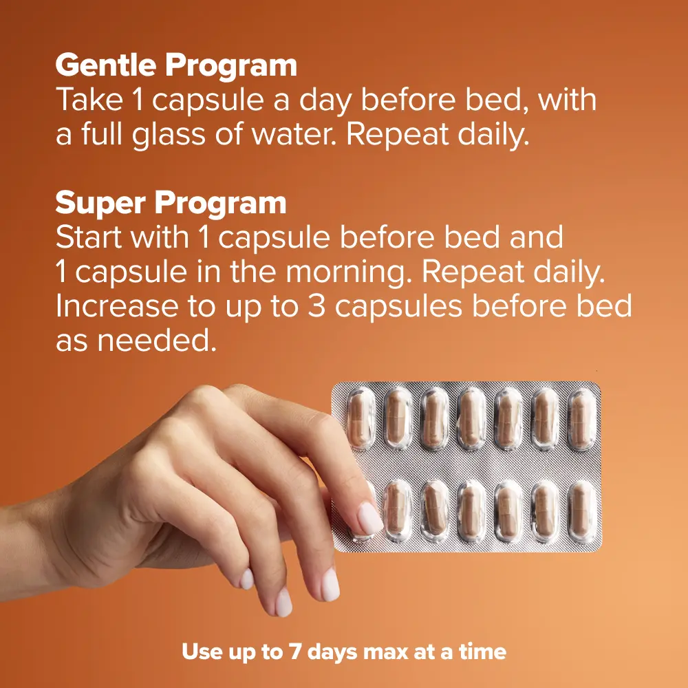A 7-day colon cleanse program designed to support healthy digestion, easier bowel movements & bloating relief.*