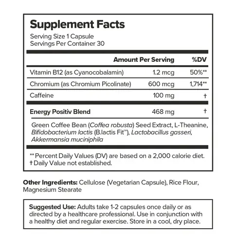 IngredientsServing Size: 2 capsules,30 servings per container. V-Positiv Probiotic Blend®: Lactobacillus acidophilus,Lactobacillus rhamnosus,Lactobacillus reuteri,Lactobacillus fermentum 50 mg (5 Billion CFUs),Xylooligosaccharides (XOS) 400 mg Other Ingredients: Maltodextrin,Cellulose (Vegetarian Capsule),Natural Color
