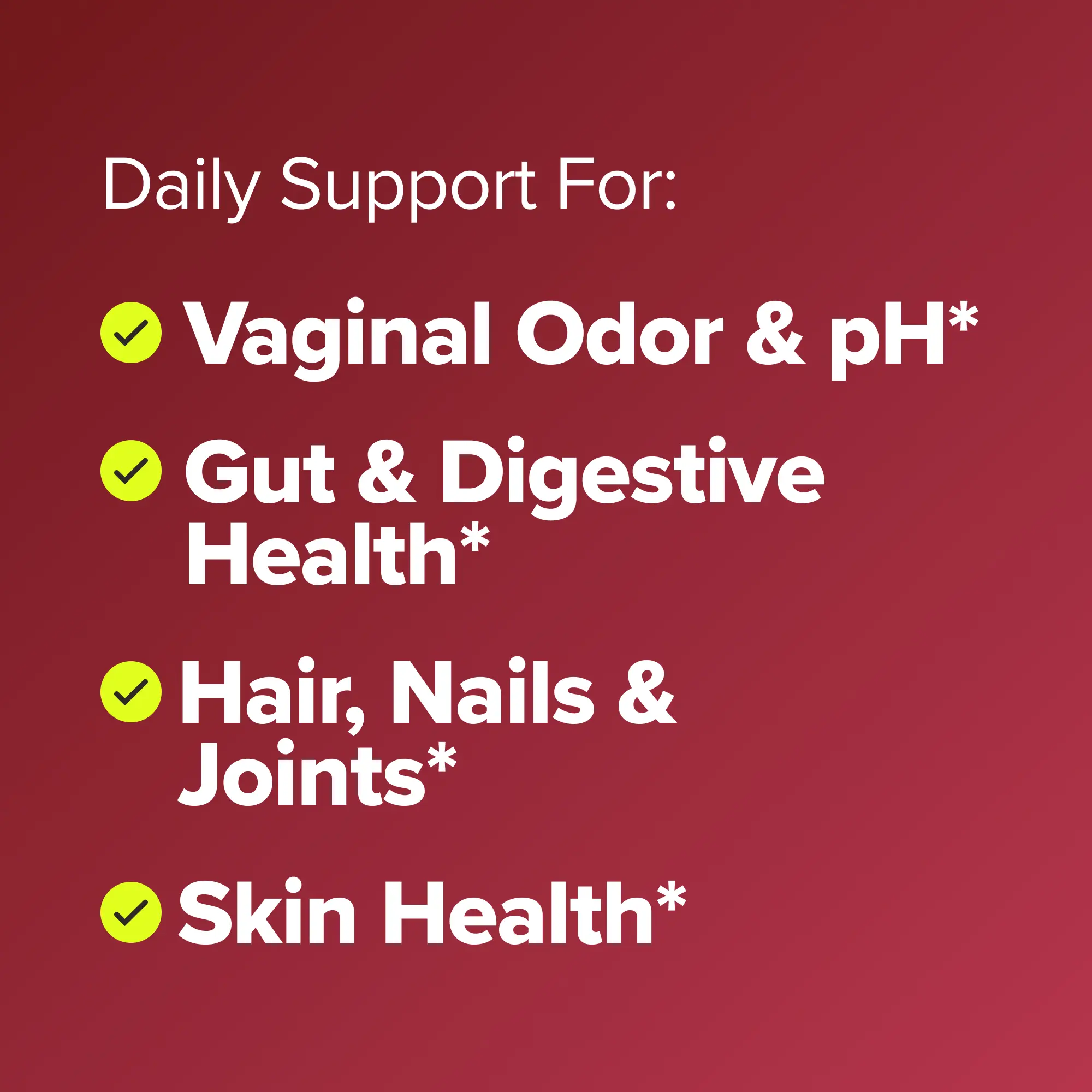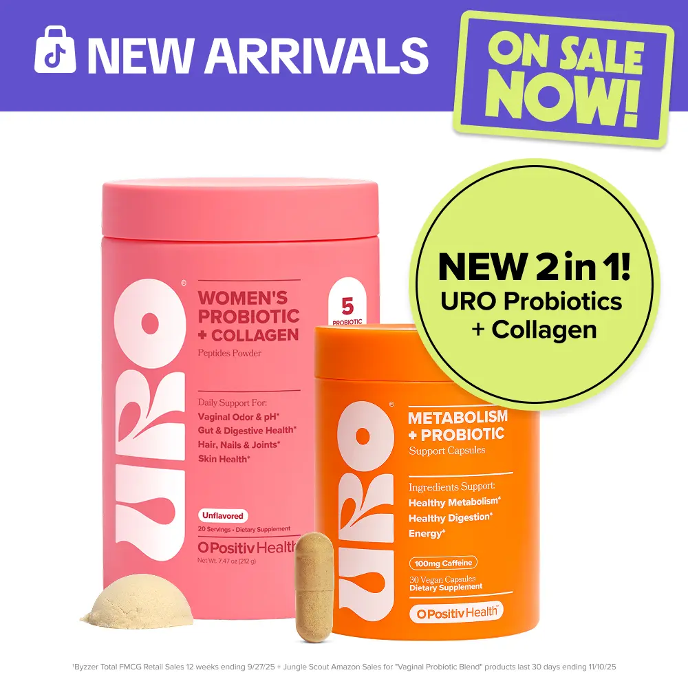 URO Women’s Probiotic + Collagen is a daily powder with targeted probiotics, collagen peptides, and vitamins to support vaginal pH, digestion, and skin health.*