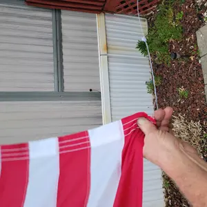 ·Durable Design: Features a reinforced canvas header with two sturdy brass grommets for secure hanging. The fly end is reinforced with four rows of thick polyester stitching to ensure strength and durability.