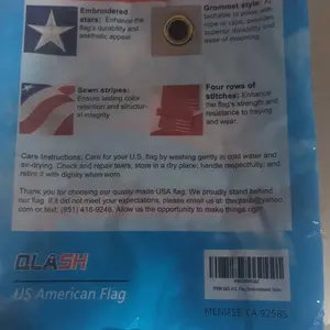Elevate your patriotic decor with the QLASH US American Flag — a meticulously crafted flag designed to showcase your pride in the United States. Made from premium 210D heavy-duty nylon, this flag offers excellent durability and longevity for outdoor use.