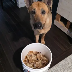 My dogs loves these treats. You get a lot in the bucket. Will last a long time with 3 GSDs. Also like the samples.