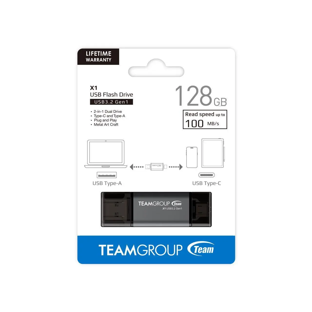 Introducing the Team 128GB X1 USB 3.2 Gen1 2-in-1 Flash Drive, designed for seamless integration into your everyday life. This flash drive is perfect for both work and travel, offering a reliable and efficient way to store and access your files.