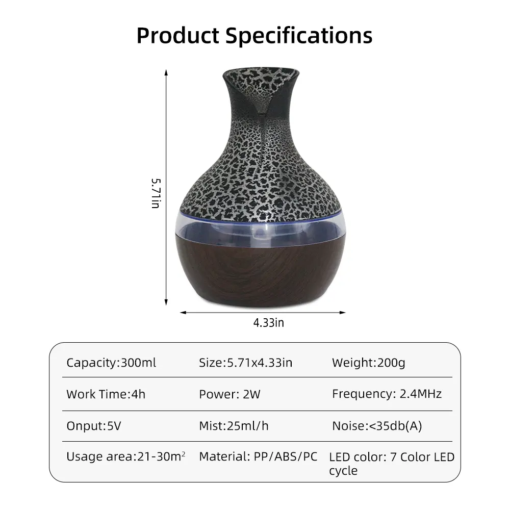 5. 300ml USB Aromatherapy Diffuser and Humidifier, Ultra Quiet Cool Mist Humidifier with Remote Control, 7 Color Changing LED Lights for Home, Office, Bedroom, Nursery