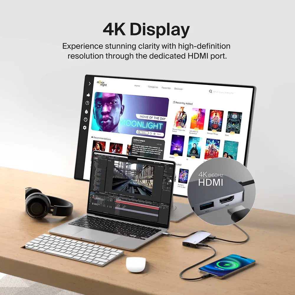 *4K@60Hz output requires that your USB-C device supports DP Alt Mode (DisplayPort 1.2 or higher). Performance depends on host device, cable, and display capabilities.