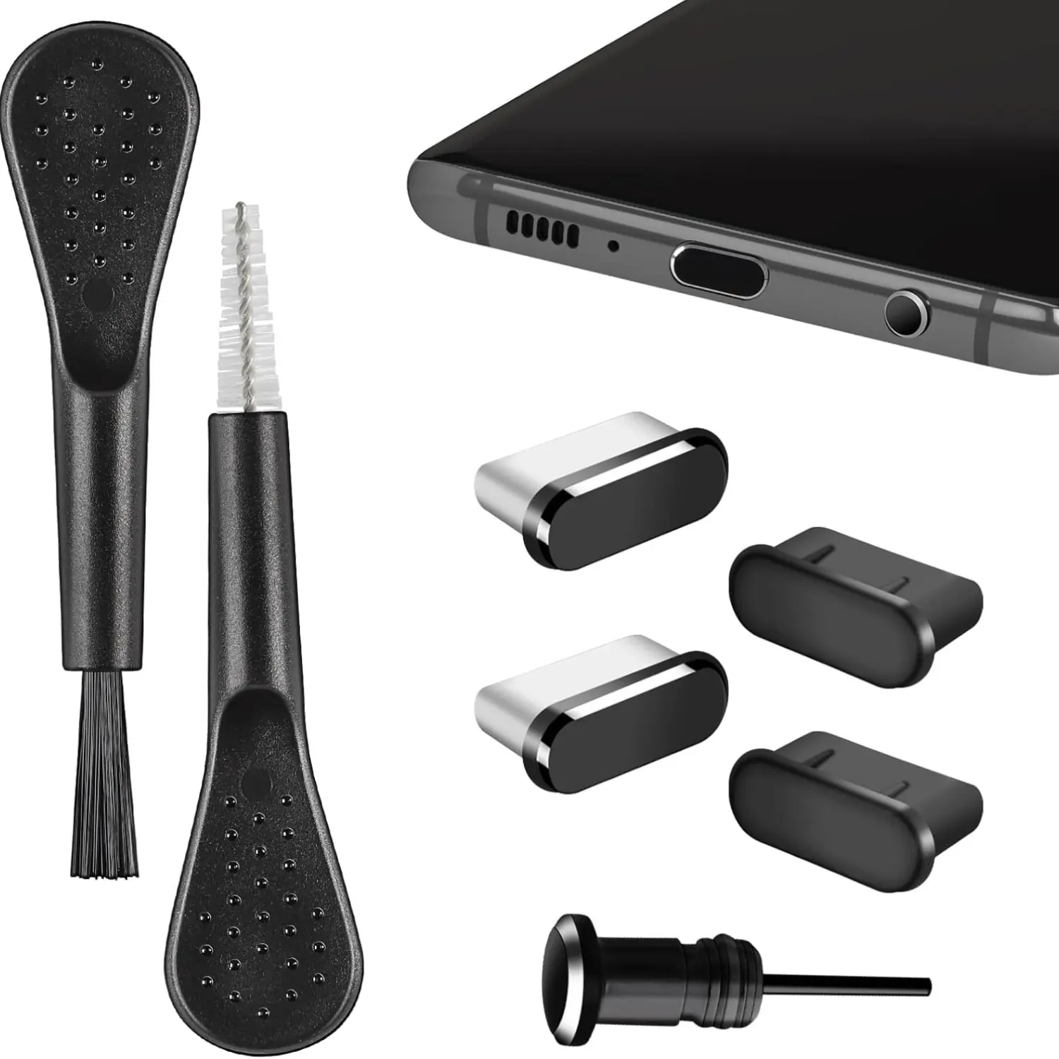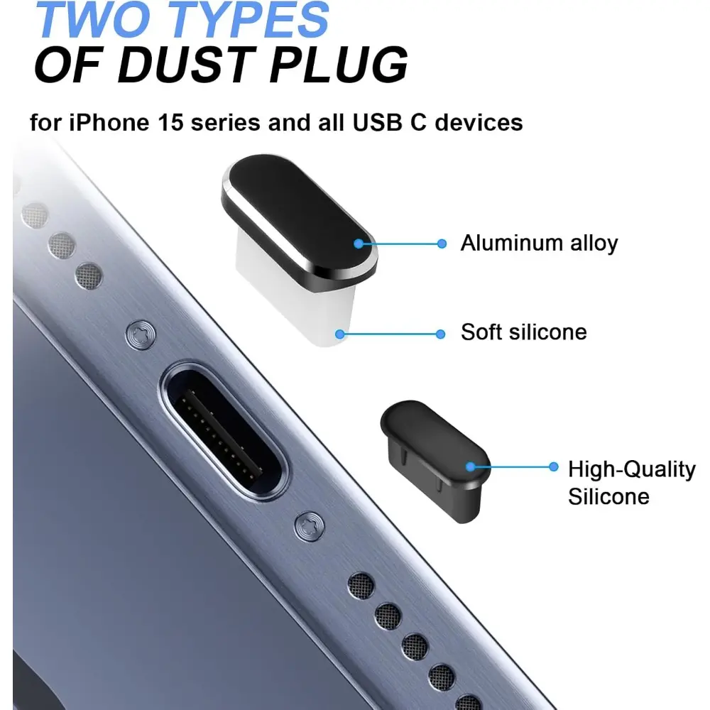 USB C Dust Plug Cover, 4pcs USB C Port Cover Cap Charging Port Cleaner with Cleaning Kits for iPhone 15 16 Series, Samsung Galaxy S23/S22/S21/S20 Ultra, Note 20/10 and All Type C Devices