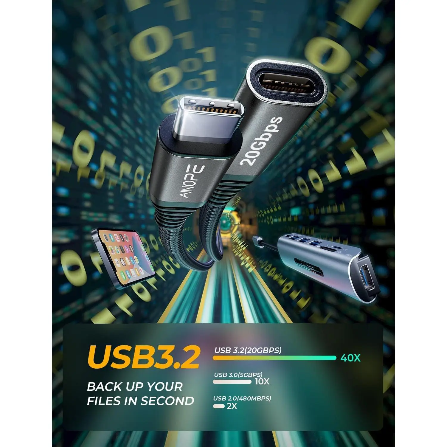 The USB C female to male cable supports data transfer up to USB3.2 Gen2 (20Gbps),