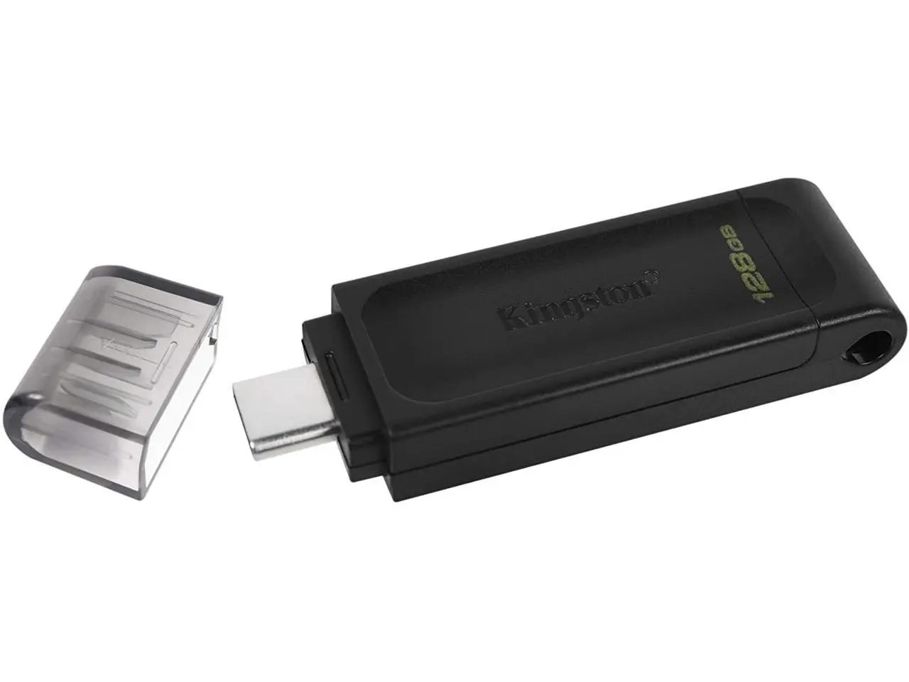 DataTraveler 70 USB-C Flash DriveKingston's DataTraveler 70 is a portable and lightweight USB-C flash drive that features USB 3.2 Gen 1 speeds. It's designed to be used with compatible USB-C devices such as notebooks, laptops, tablets and phones. With capacities of 128GB, the DataTraveler 70 is more than capable of expanding your storage for everyday use. Key FeaturesUSB-C StorageFor use with USB-C devices like notebooks, tablets, and smartphones. USB 3.2 Gen 1 speedsDelivers up to 10X faster transfer speeds than USB 2.0. Portable and simple designCompact design and included cap make it easy to transport.