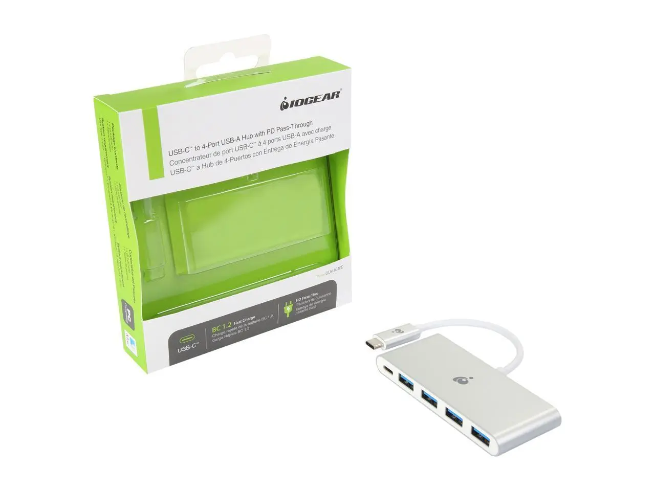 IOGEAR GUH3C4PD USB-C to 4 Port USB-A Hub with Power Delivery Pass-Thru