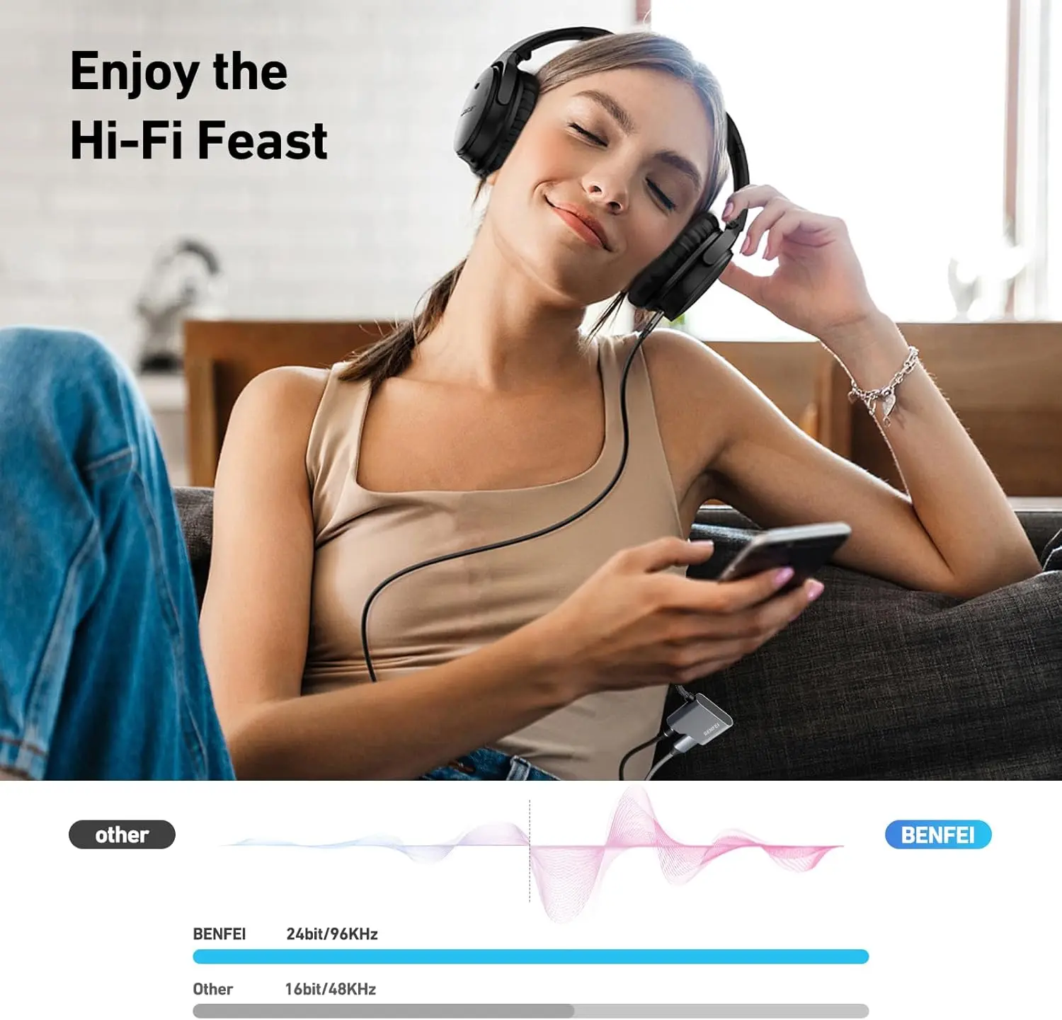 ·【Hi-Fi Sound Quality】 This usb c to headphone adapter adopted an advanced DAC Smart Chip, offer high-definition audio, powerful noise reduction, you can get higher fidelity sound from it.