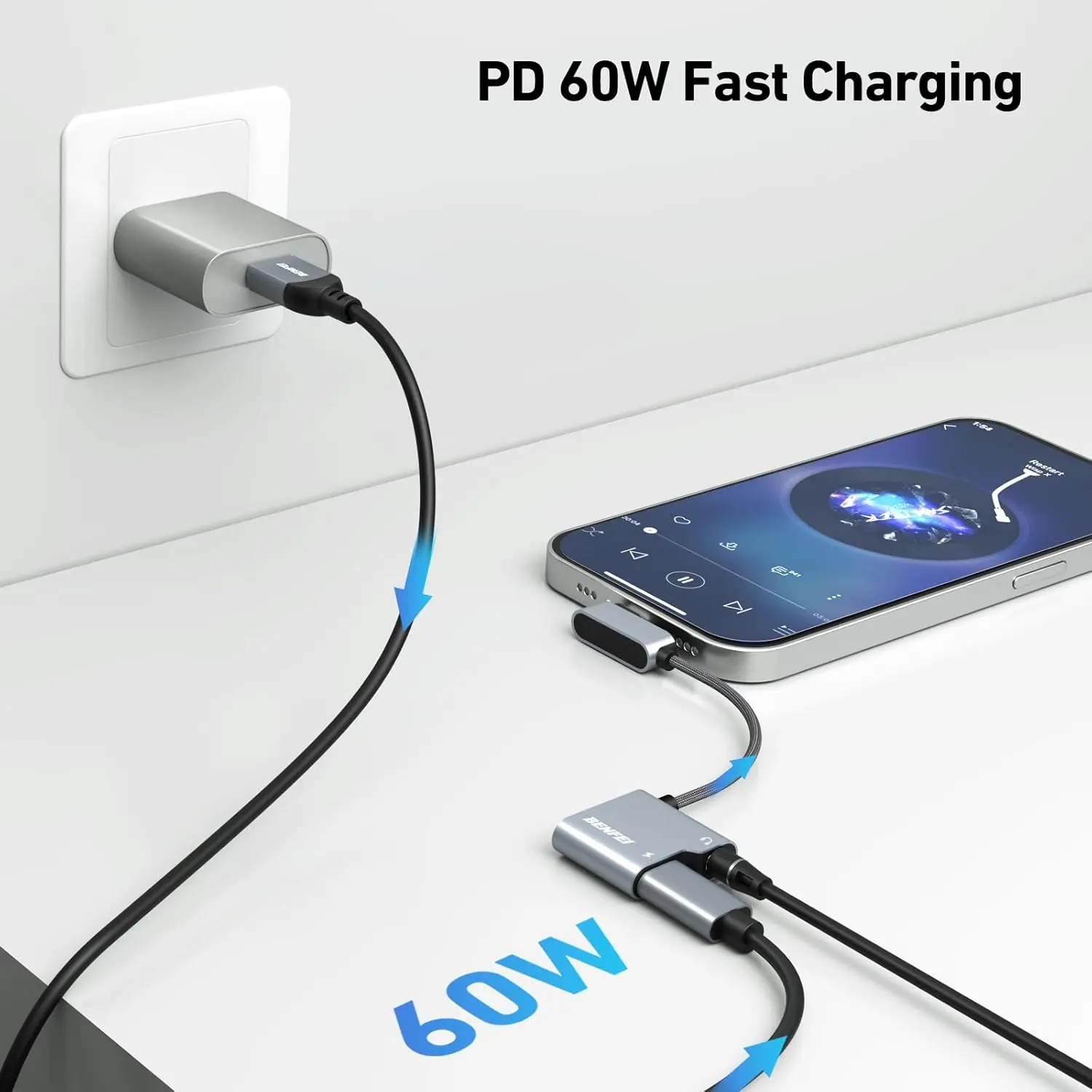 BENFEI USB C to Audio Jack Adapter with 60W Fast Charging, USB-C to 3.5mm Female Headphone