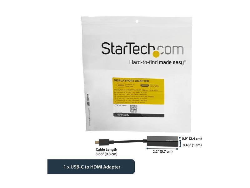 StarTech.com CDP2HD4K60 USB C to HDMI Adapter - 4K 60Hz - Thunderbolt 3 Compatible - USB-C Adapter - USB Type C to HDMI Dongle Converter