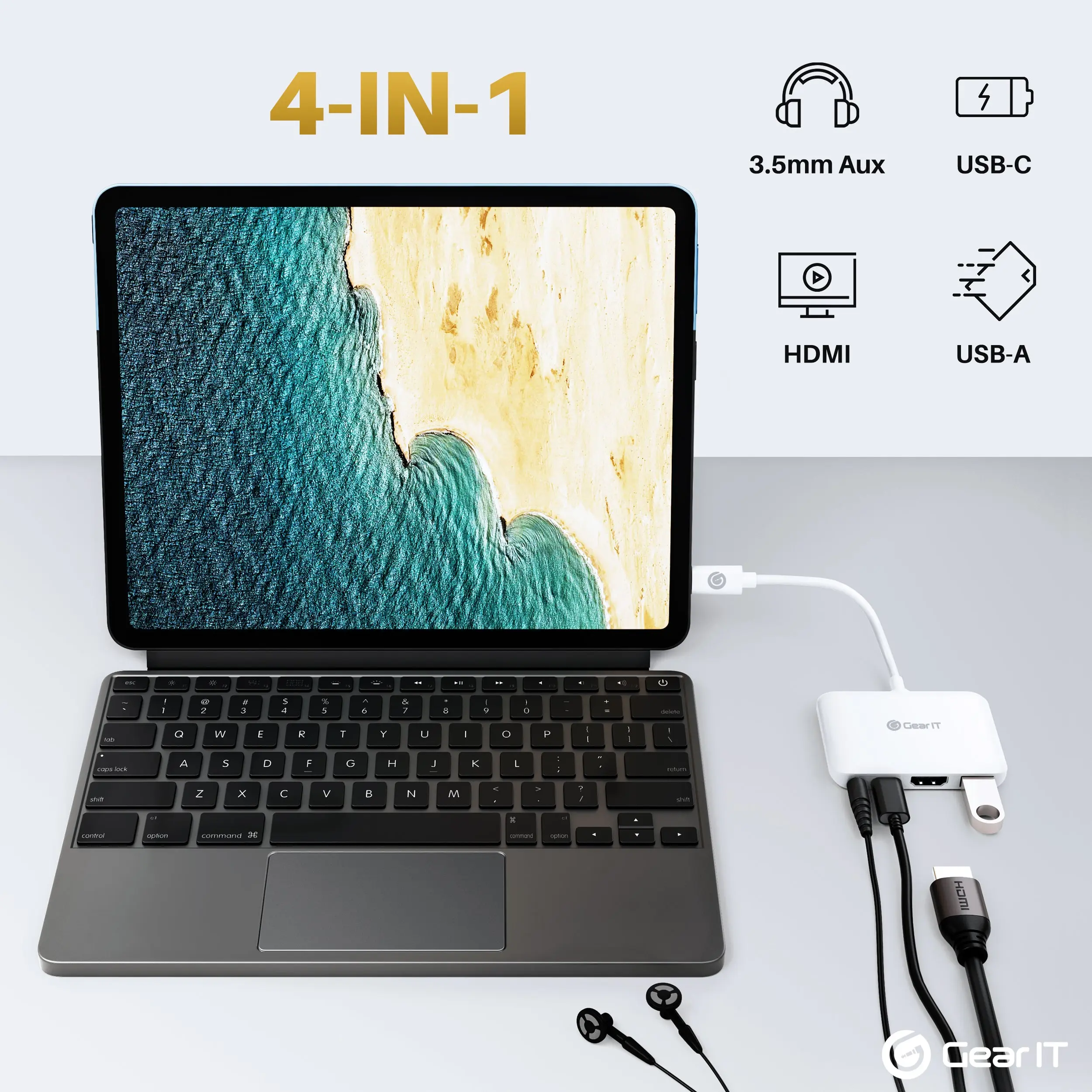 ·Turn your iPad Pro’s single USB-C port into multiple ports. With a 100W USB-C charging pass through port, HDMI port, 3. 5mm headphone jack, USB-A port, you have everything you’ll ever need