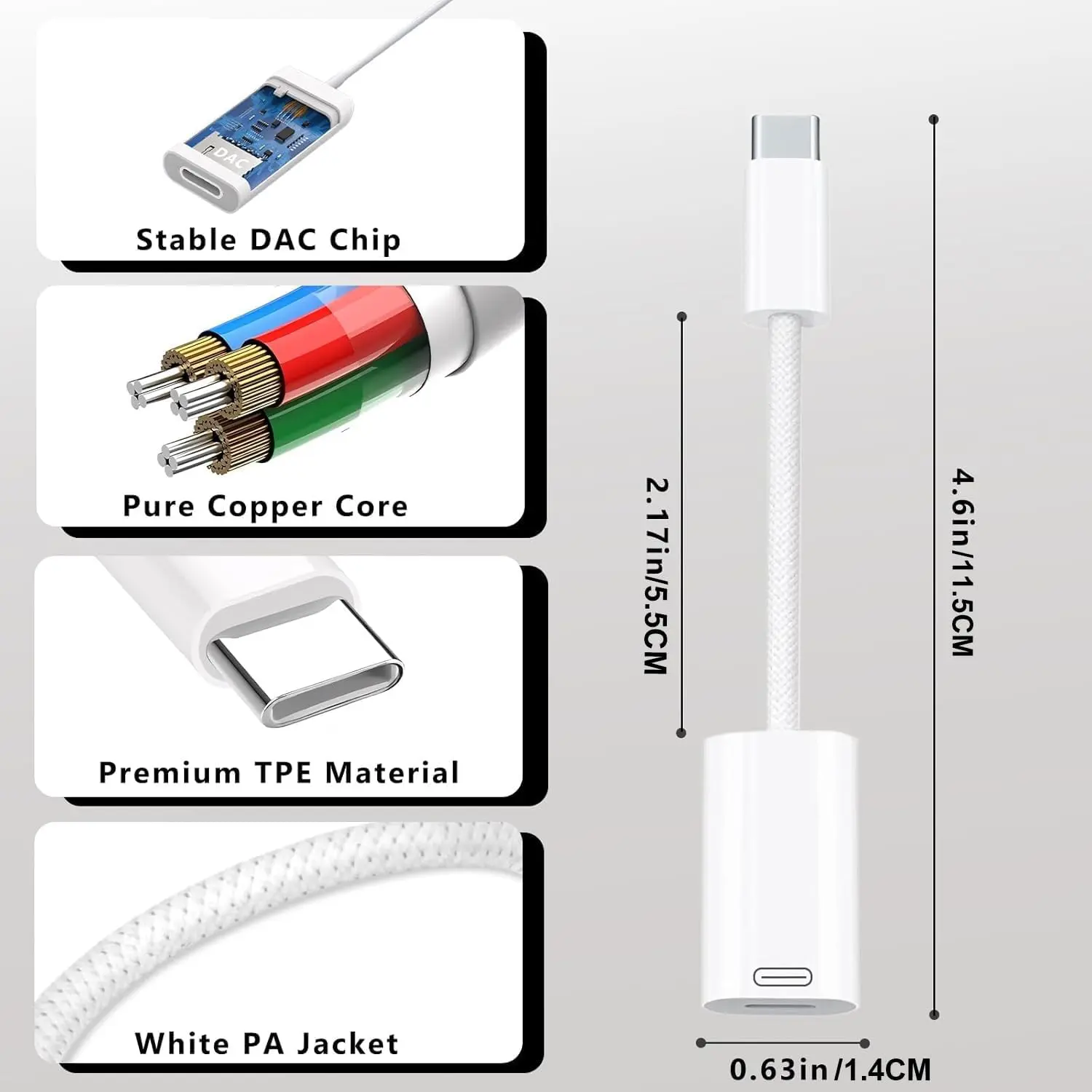 ·Plug & Play: No need for any driver installation in this headphone adapter, just connect your USB C to lightning audio adapter to lightning headphones, and you can enjoy the music/calls/PD fast charge/data transmission