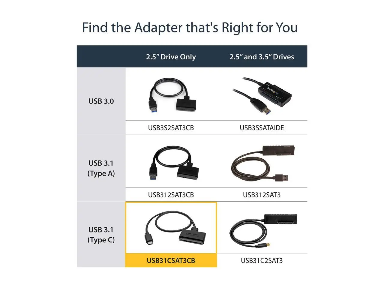 5. StarTech.com USB31CSAT3CB USB C To SATA Adapter - for 2.5” SATA Drives - UASP - External Hard Drive Cable - USB Type C to SATA Adapter