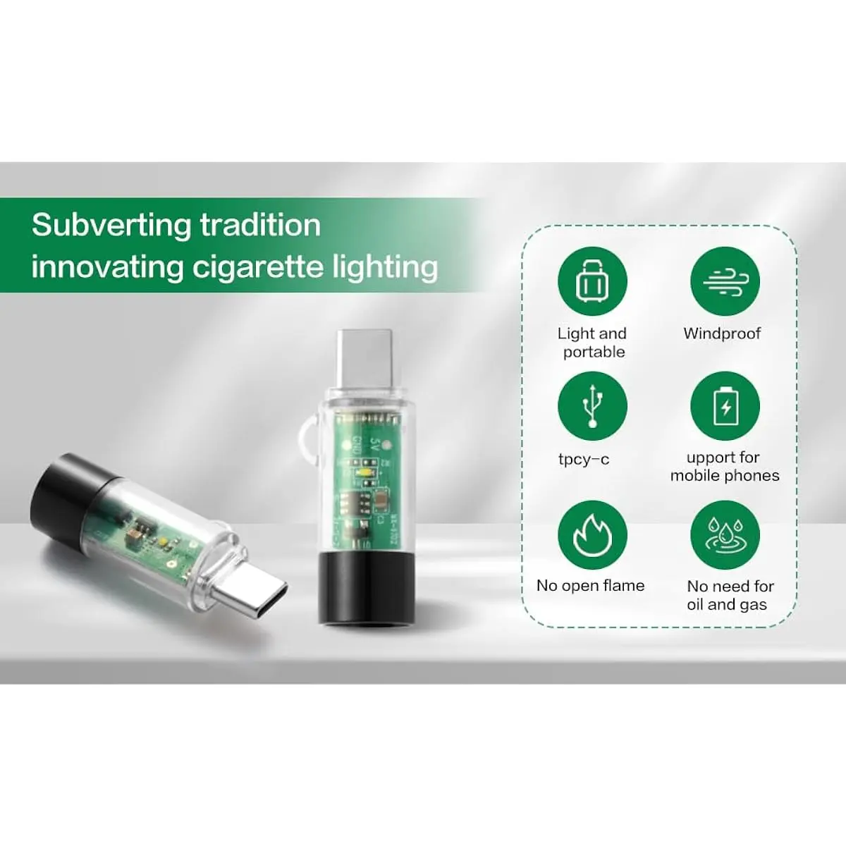 USB-C Electric Lighter.Windproof Waterproof.Phone or Power Bank Powered, mini, Lightweight, Activated by plugging into Power Source, Automatically Turns Off After 10 Seconds(Transparent)