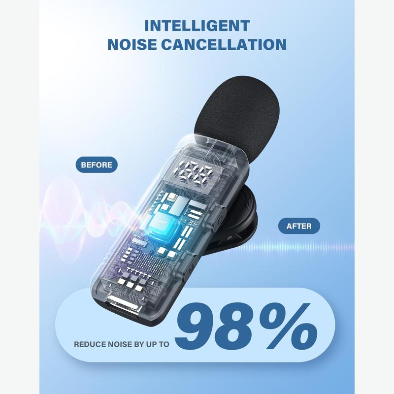 【ADVANCED NOISE CANCELLATION & CLEAR AUDIO FOR DAILY USE】 This clip on microphone features an upgraded DSP chip and smart noise reduction that effectively filters out ambient sounds like wind and background noise. It delivers clear and clean audio that’s ideal for vlogging, online meetings, interviews, and social media content creation. While it offers excellent everyday performance, it's not intended for studio-grade music recording. Best suited for lapel microphone for recording, podcast microphone wireless, and wireless mic for video recording use.