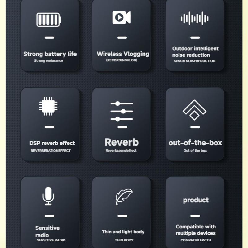 【MULTI-FUNCTION AUDIO CONTROL: MUTE, REVERB, REDUCTION】 With just a tap, switch between mute, noise reduction, and light reverb modes to adapt to various recording needs. These features enhance voice clarity and add subtle effects for vlogs, voiceovers, and casual content creation. While the reverb adds a nice touch for creative audio, it is not intended for professional music production or studio-level vocals. Ideal for wireless microphone for YouTube, lapel microphone wireless, and podcast microphone for Android users.