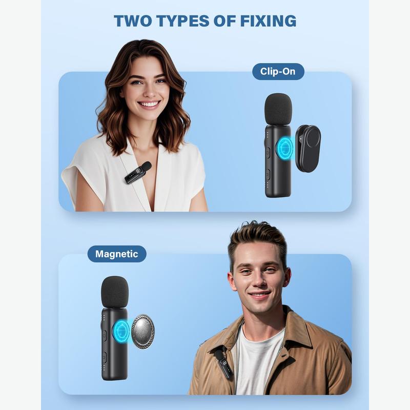 【MAGNETIC DESIGN FOR EASY & DISCREET ATTACHMENT】 This upgraded wireless lavalier microphone includes a strong magnetic back clip that securely attaches to shirts, jackets, or even metal surfaces, offering hands-free convenience without bulky clips. Whether filming on the move or in a tight space, this design makes positioning effortless and discreet—perfect for interviews, vlogs, and tutorials. Ideal for clip-on mic, mini microphone for iPhone, and wireless microphone for Android users.