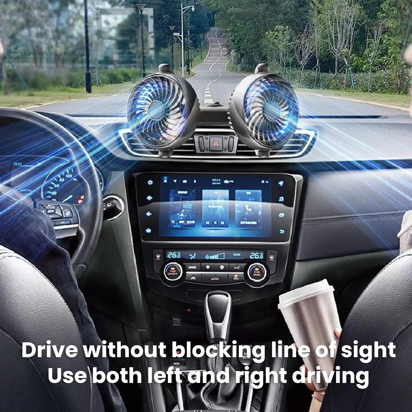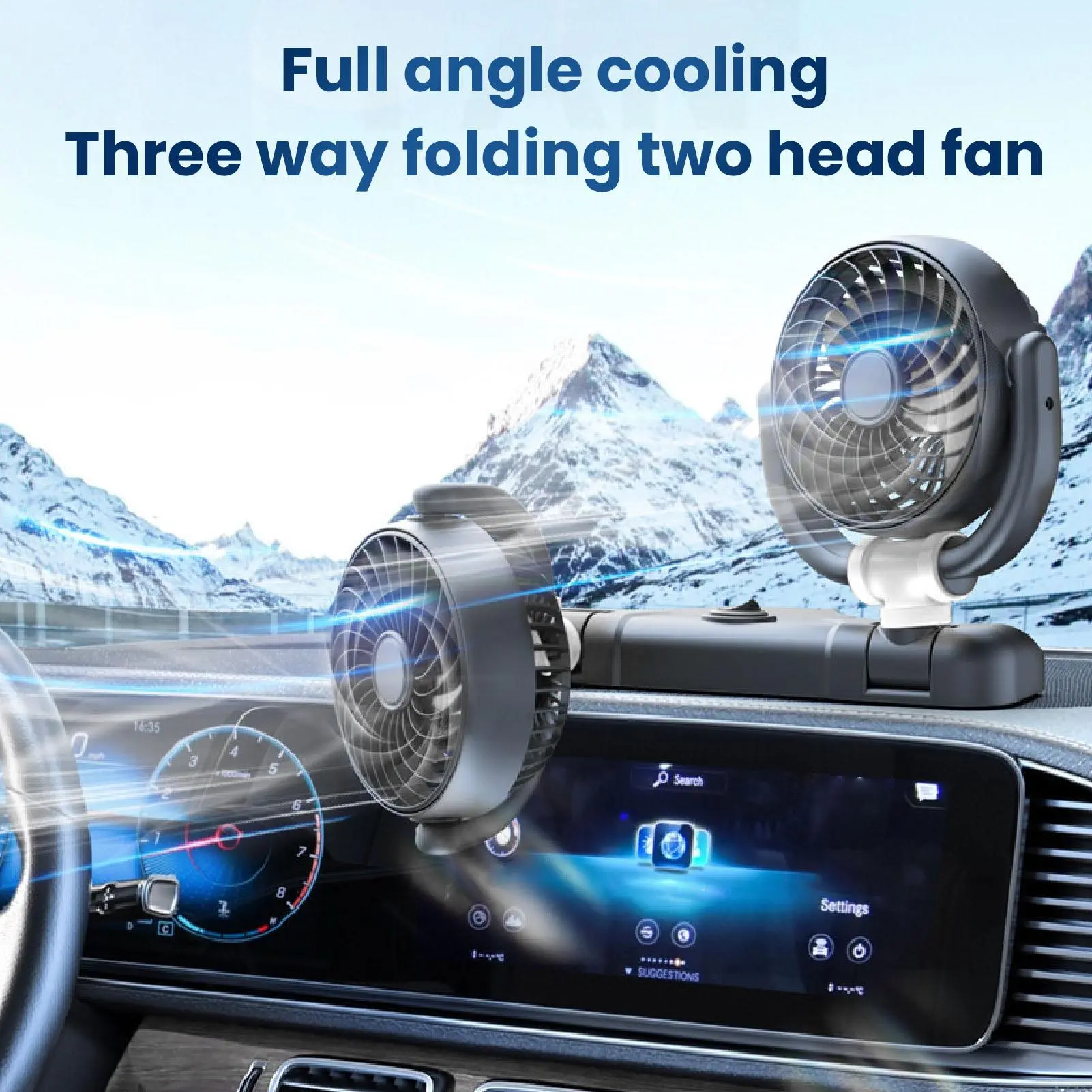 The dual-headed fan can be adjusted to the air conditioner's air outlet to ensure it does not obstruct the driver's view and improve driving safety.
