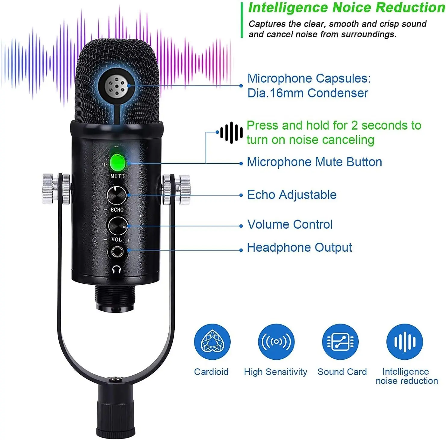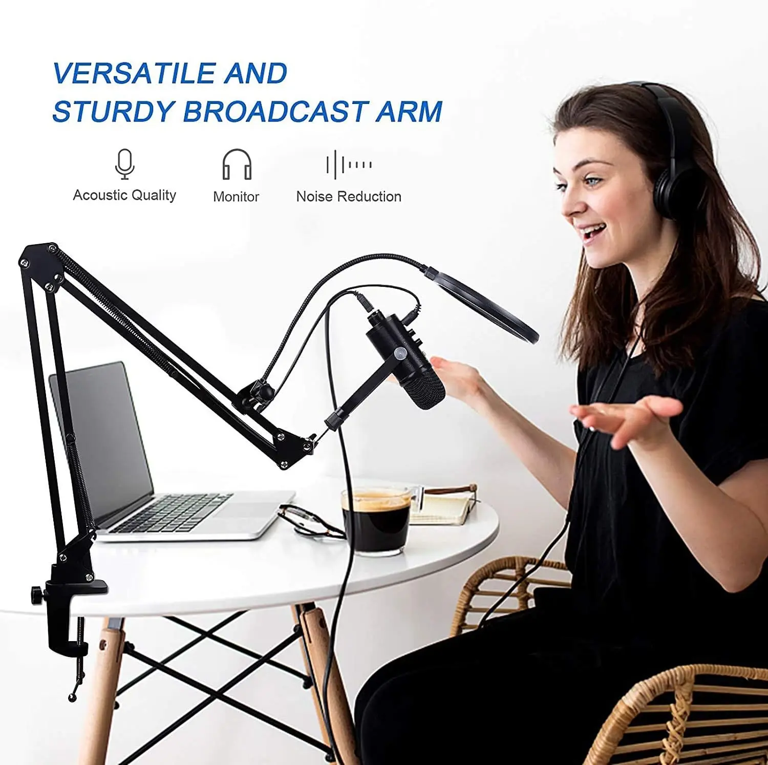 🎤【Zero-Latency & Durable Arm Set】---The newest microphone with boom arm , you can adjust the volume and echo effect directly on microphone by turning knobs,it make sure high-quality sound output.Podcasting microphones built-in 3.5 mm headphone jack, which realize zero-delay .One key for mute button can control the recording process at any time.360° wide range adjustable stand up microphone, it's easy to adjust every angle and height to match your working position.