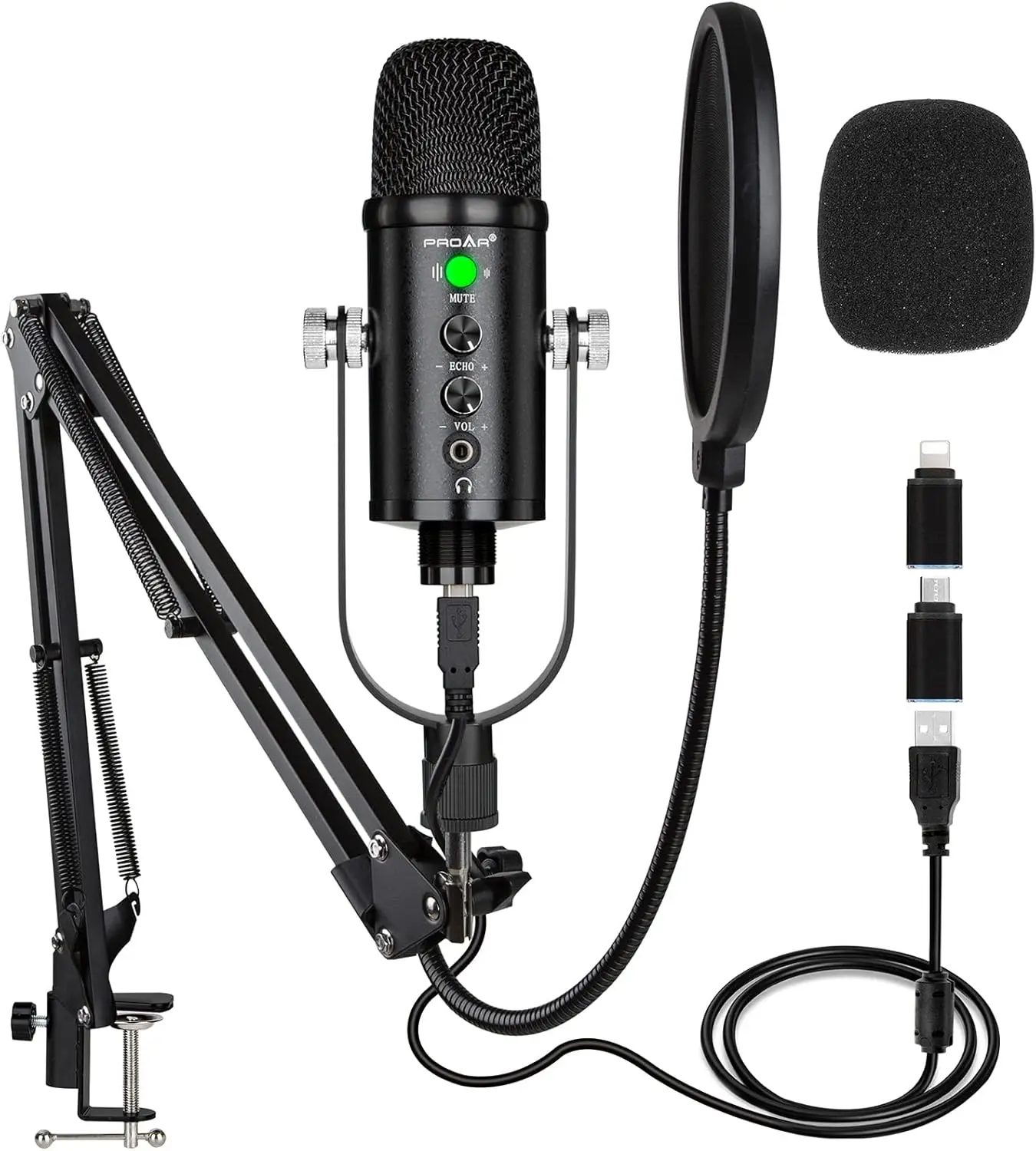 🎤【Package List & Excellent Customer Service】---USB microphone kit including : 1xMicrophone,1x110in USB ,1xAdapter for ,1xType-C Adapter,1xAdjustable Arm Stand,1xU Shape Mount,1xPop Filter,1xSponge Cover,1xUser Manual. Our condenser studio mic come with one year warranty.If there is any quality problem, just contact and we will make sure you are satisfied. So rest assured to buy our microphone kit!