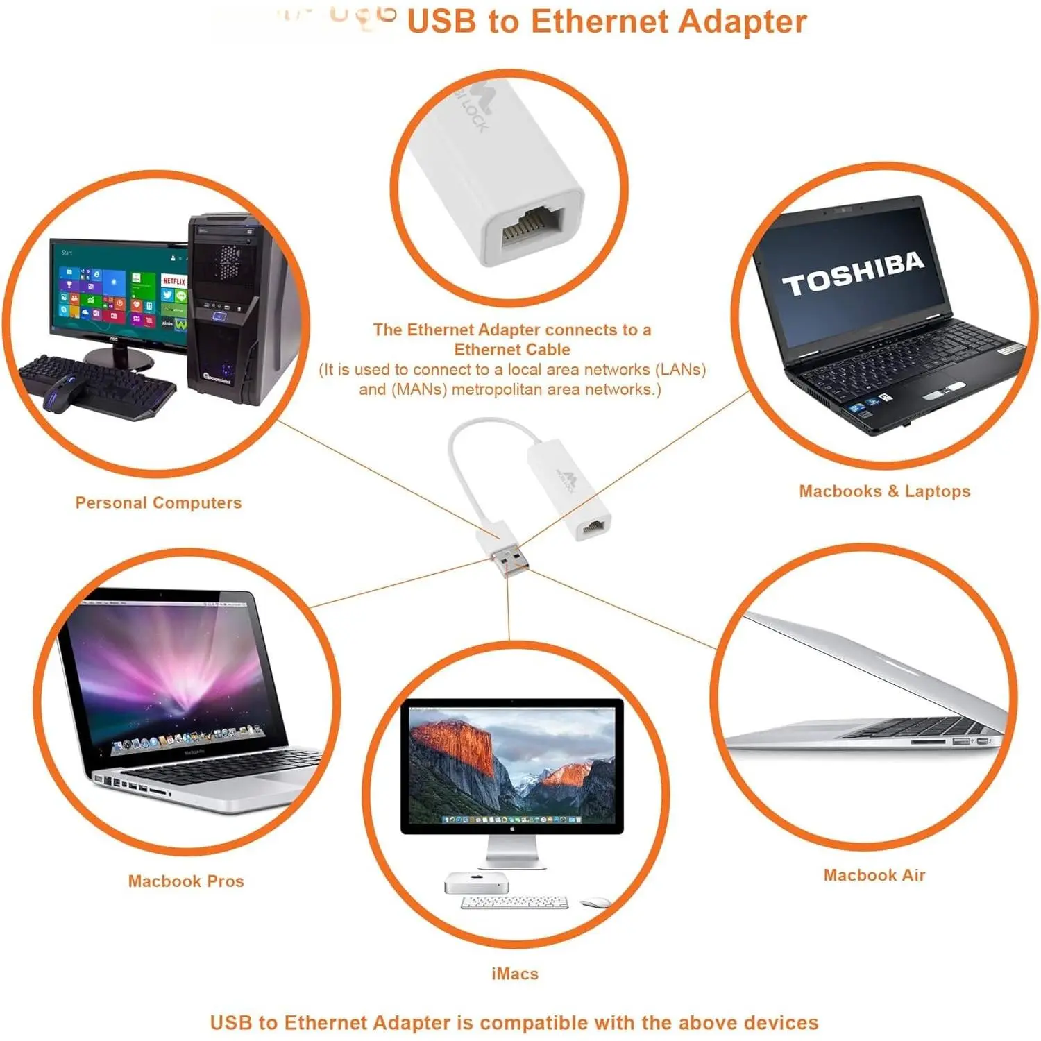 ✅ You can use this USB 2.0 ethernet connector to REPLACE your BROKEN LAN PORT. This USB ethernet adapter enhances your existing computer's networking capability and is for laptops and PCs with a defective, slower 10/100 Mbps or devices without an Ethernet port. However, the USB 2.0 to ethernet LAN network adapter DOES NOT WORK with , or any devices using 8 pin connector.